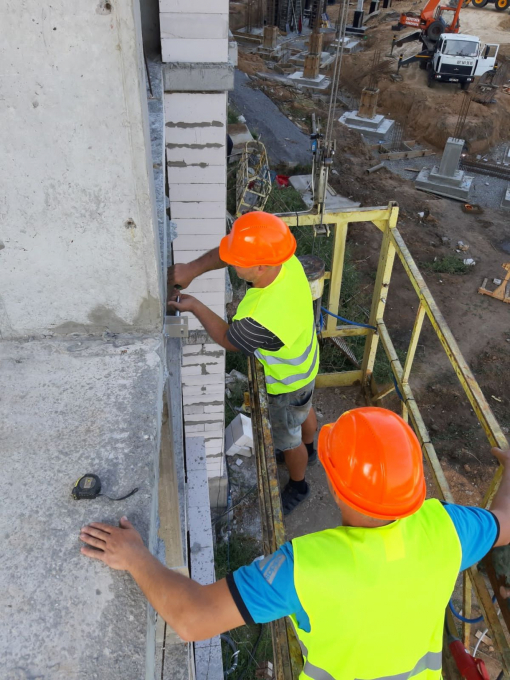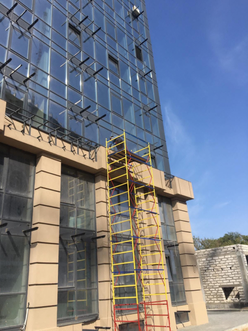 - начали монтаж кронштейнов для установки алюминиевого каркаса светопрозрачной фасадной системы.