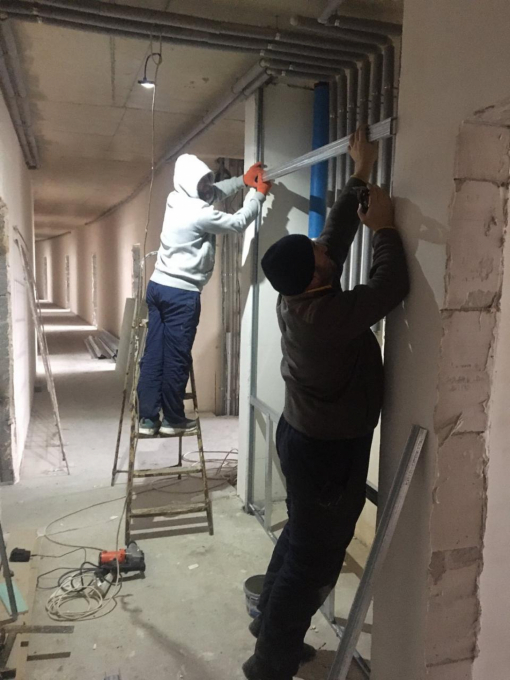 - выполняются работы по формированию гипсокартонных ниш на 4 этаже;