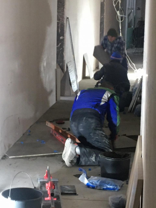 - выполняется укладка плитки на 4 этаже;