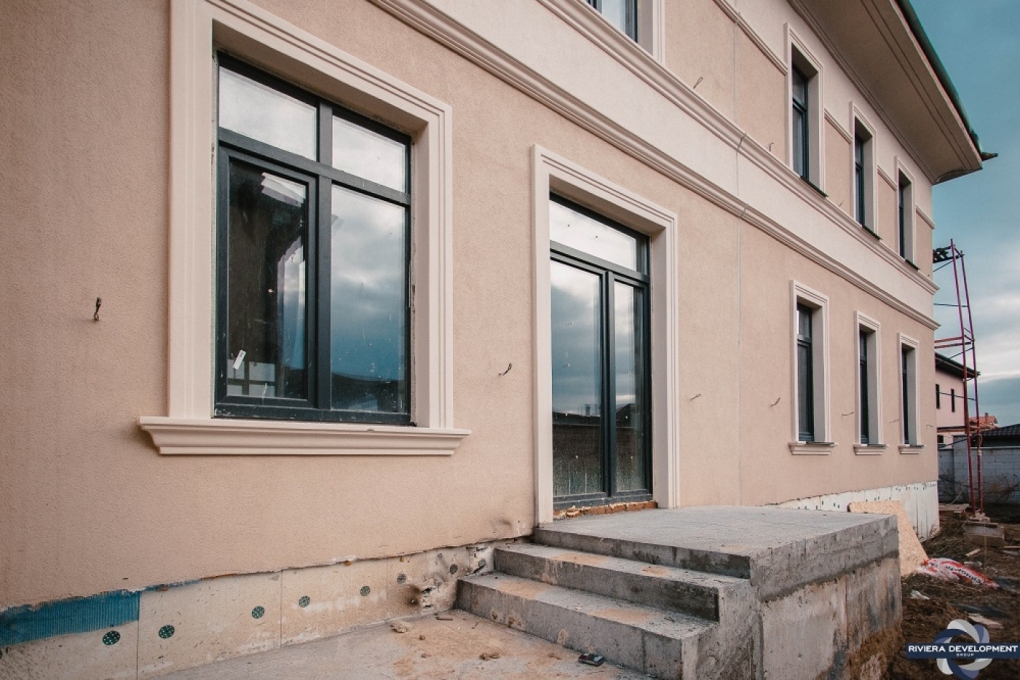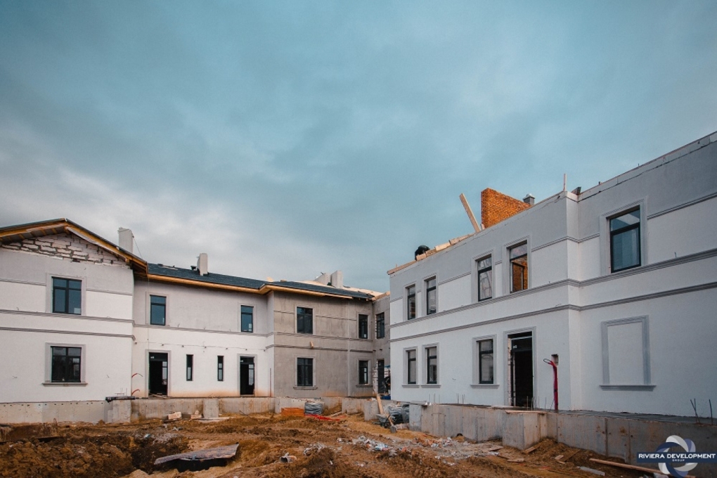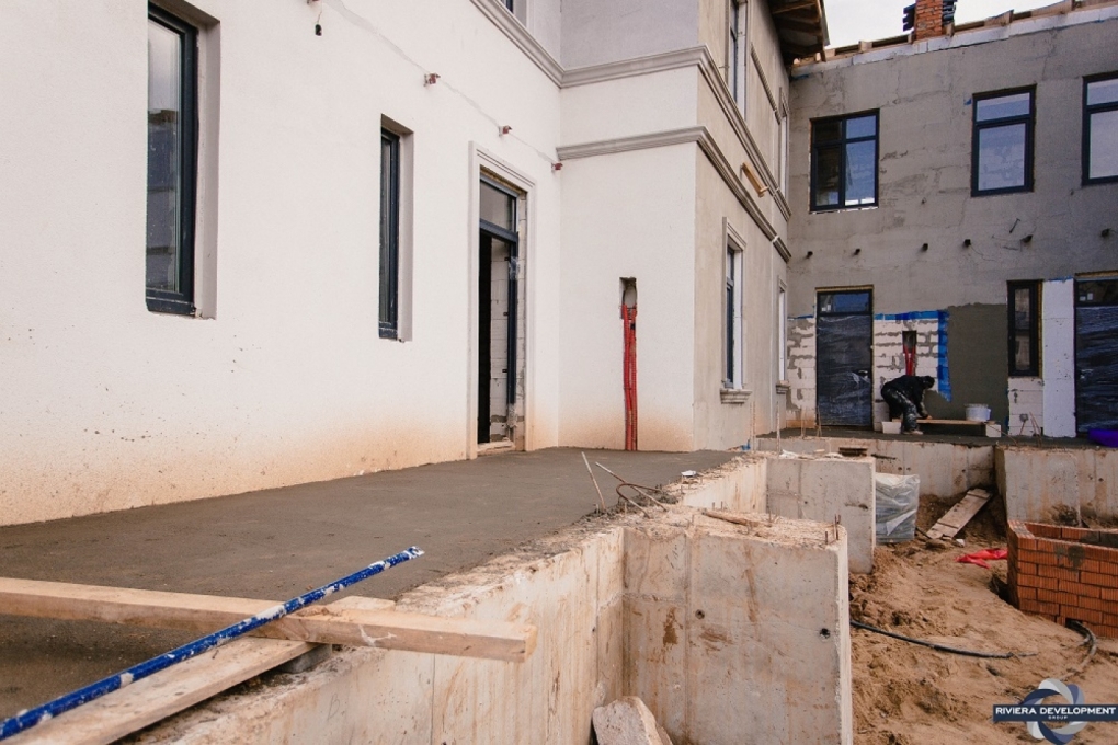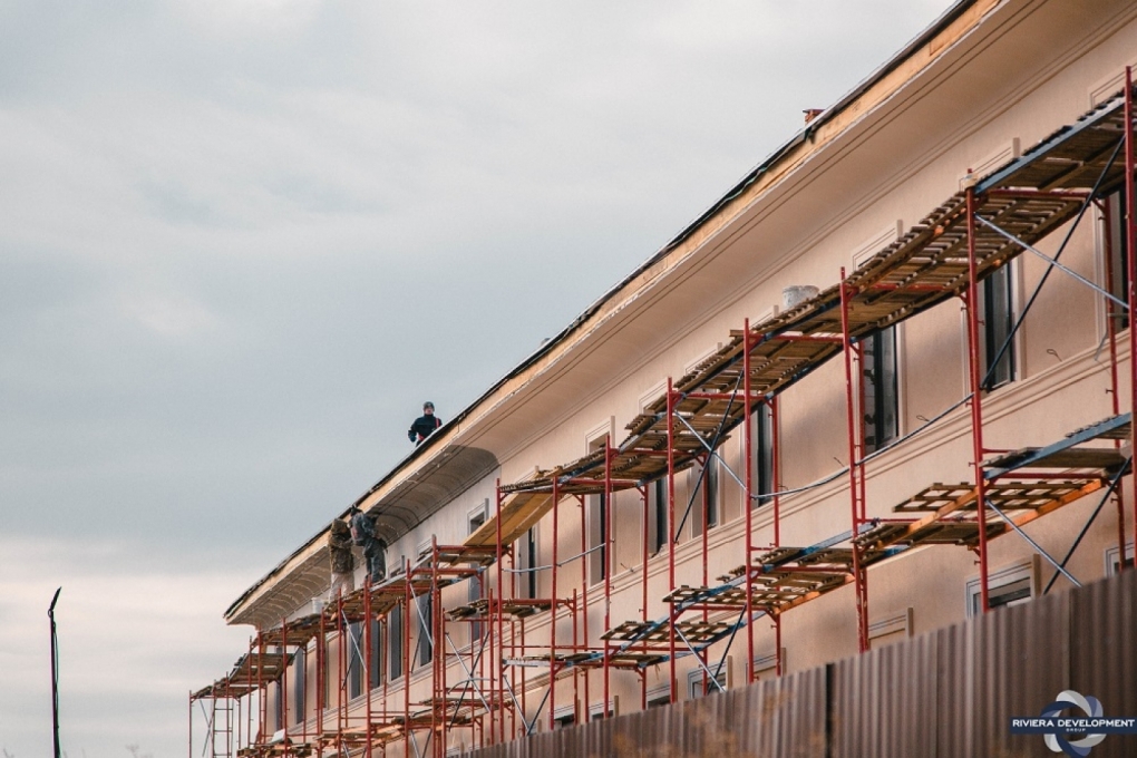 - На главном фасаде смонтировано 75% декора, продолжаются работы по финишной покраске.