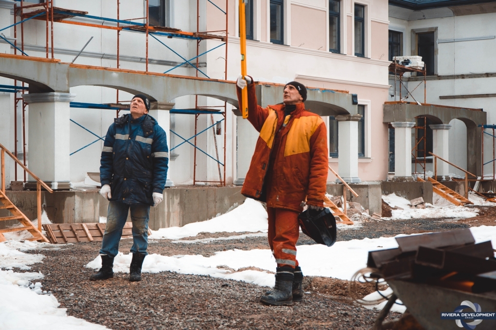 - Продолжаются работы по главному фасаду.