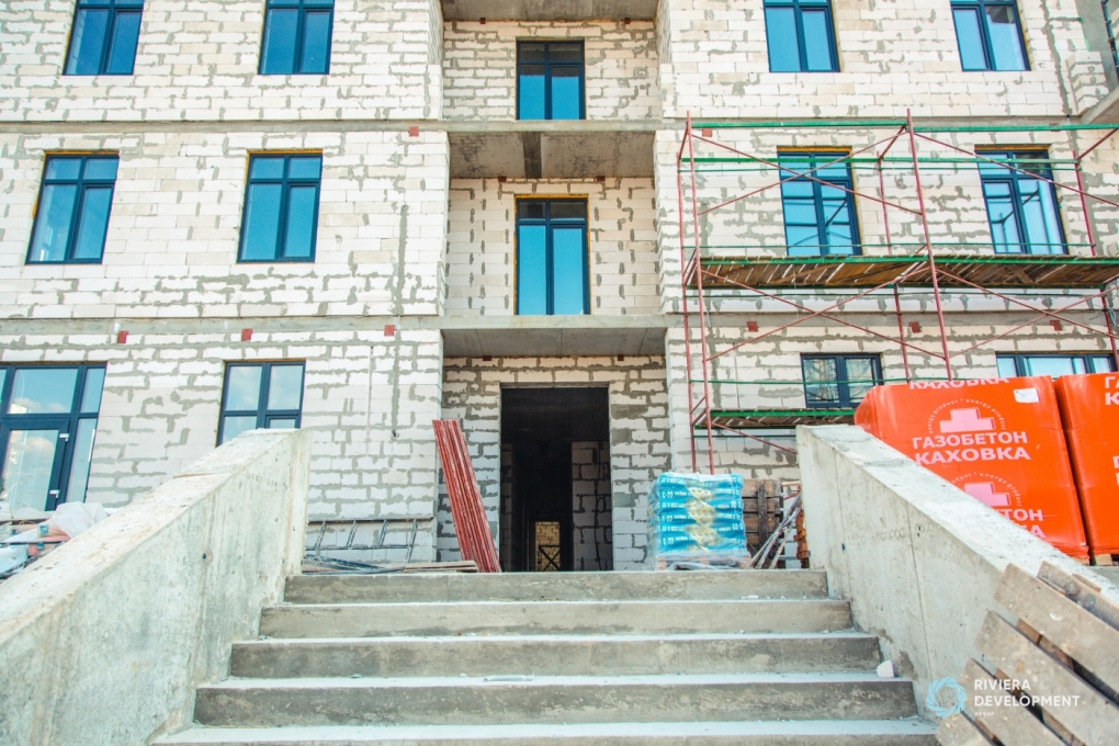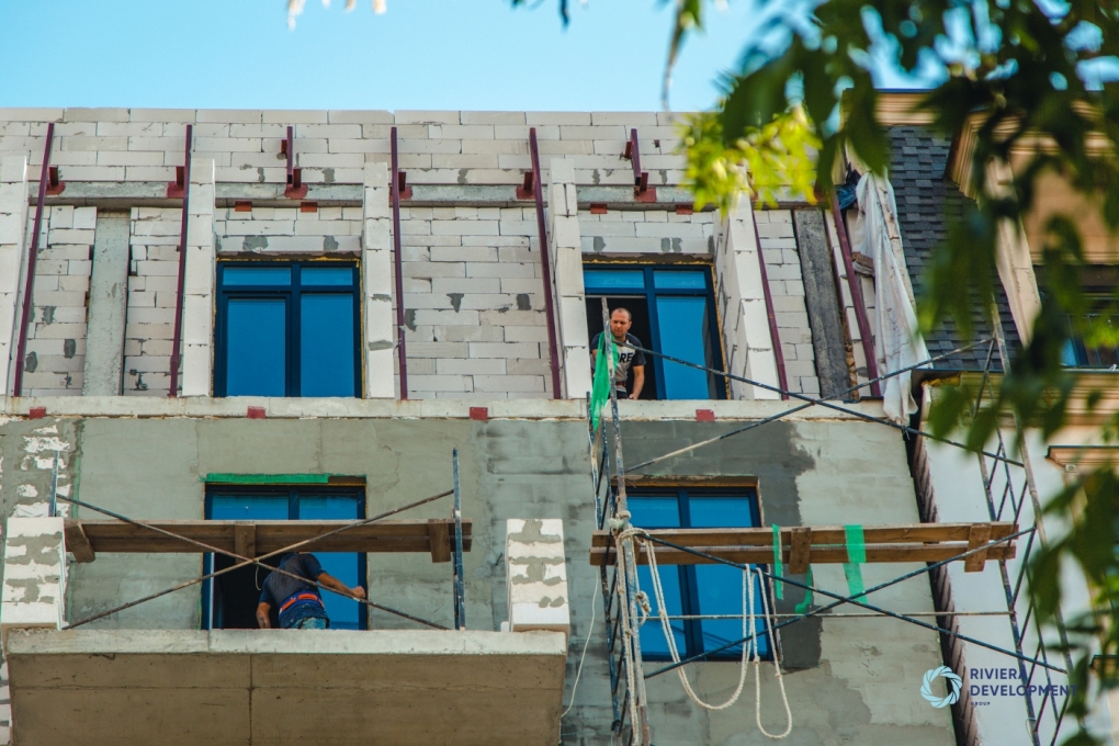 - Приступили к отделке фасада, в частности, ведутся штукатурные работы;