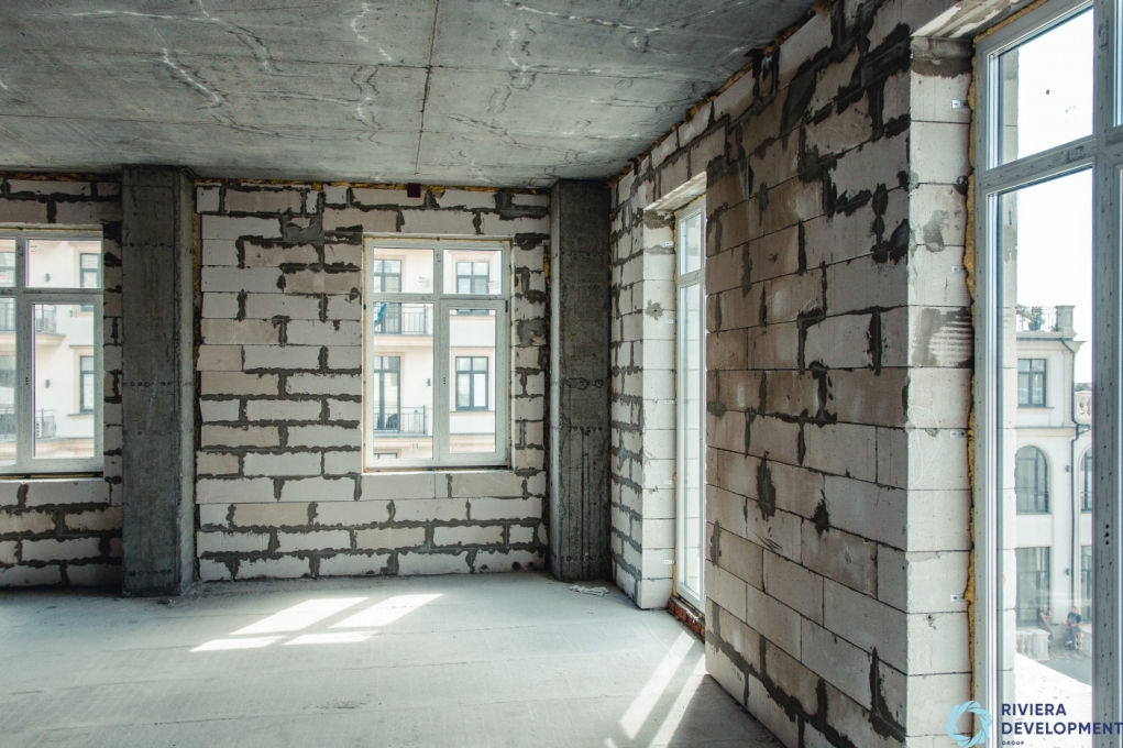 - Завершаются работы по кладке межквартирных стен.