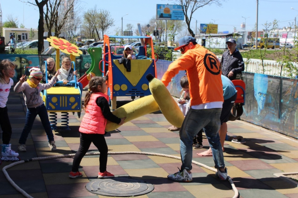 Але і це не все. В кінці місяця у нас в гостях був відомий одеський ведучий Тьома Дєточкін з цікавою програмою, під час якої діти грали, танцювали, влаштовували бої бананами.
