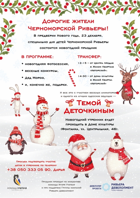 До Нового року залишилося зовсім небагато. Саме час створювати новорічний настрій. І ми запрошуємо діток Міста біля Моря Чорноморська Рів'єра на новорічний ранок!