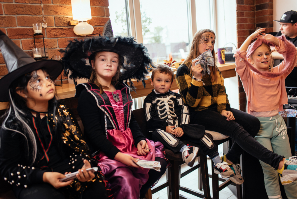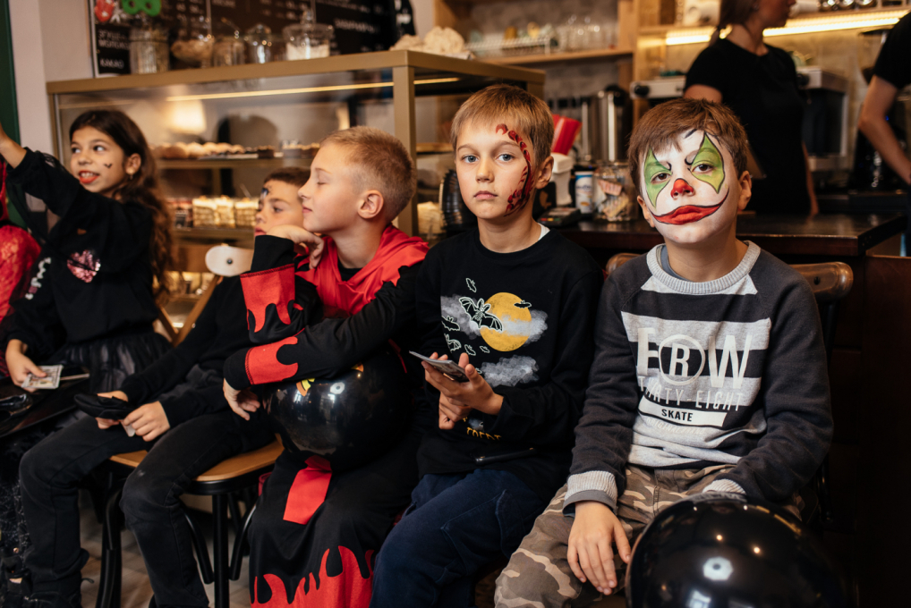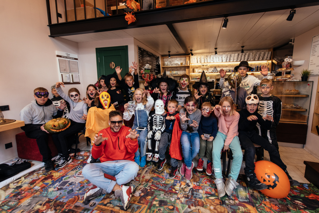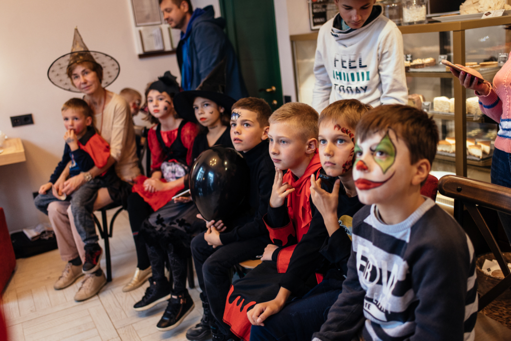Для дітей Черноморской Ривьеры аніматори продумали страшно цікаву програму. Один з кращих одеських ведучих Тьома Дєточкін приготував жахливо захоплюючі конкурси, батьки і діти заздалегідь подбали про костюми і декорації, перетворивши кав'ярню «Катя Кейк» в найстрашніше і найвеселіше місце для святкування.