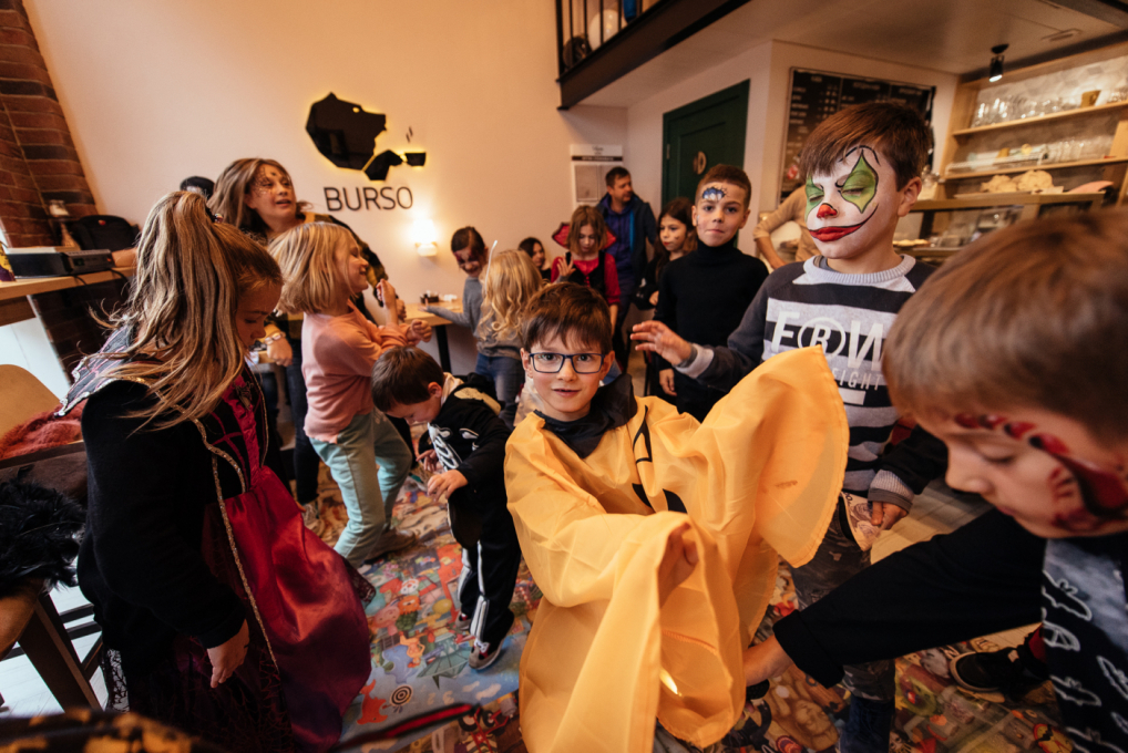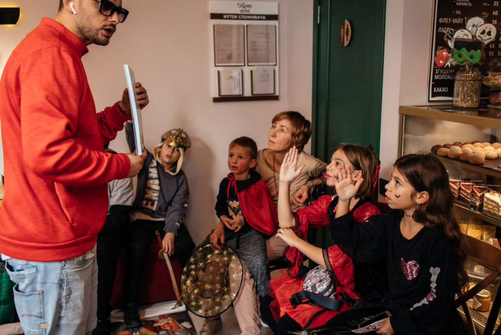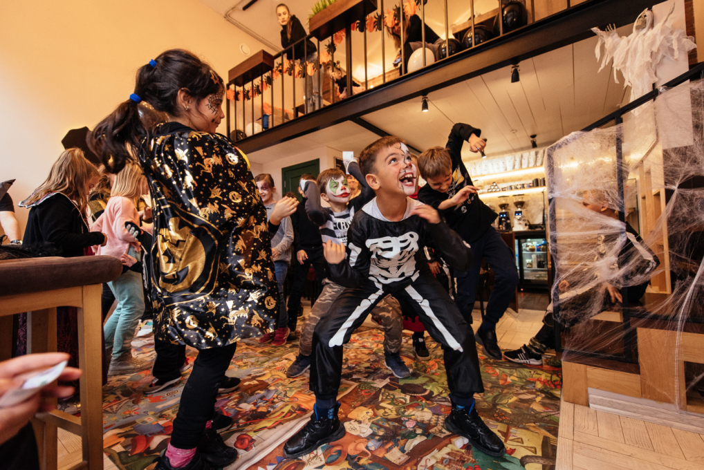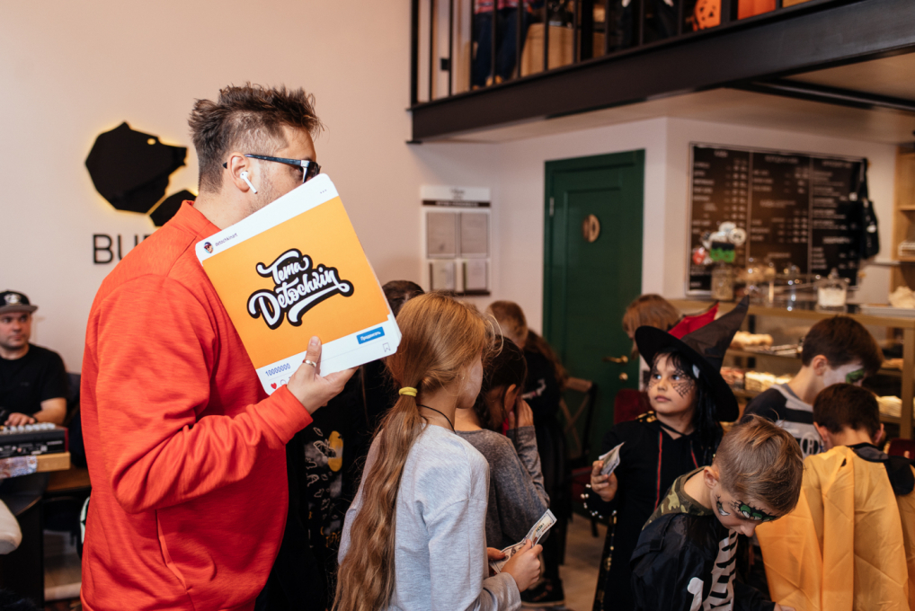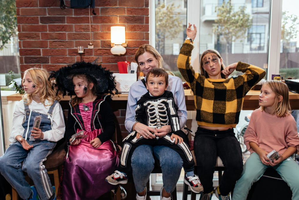 Для дітей Черноморской Ривьеры аніматори продумали страшно цікаву програму. Один з кращих одеських ведучих Тьома Дєточкін приготував жахливо захоплюючі конкурси, батьки і діти заздалегідь подбали про костюми і декорації, перетворивши кав'ярню «Катя Кейк» в найстрашніше і найвеселіше місце для святкування.